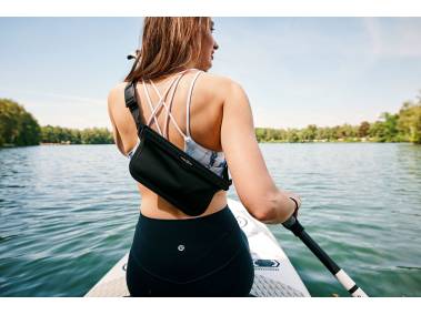 Casually across the chest or practically around the hips: the HERMETIC sling bag fits just as perfectly as it protects against moisture and dust. The patented, automatically sealing closure is 100% tight. Be it on a city trip, a jump into a wild adventure, or discovering the world on the water with your SUP: The sling bag offers space for the most relevant things that are dear to you. In addition to a smartphone, important cards, charging cables and car keys are always with you. And the magnetic belt buckle can be easily operated with one hand.
