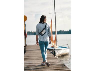 Casually across the chest or practically around the hips: the HERMETIC sling bag fits just as perfectly as it protects against moisture and dust. The patented, automatically sealing closure is 100% tight. Be it on a city trip, a jump into a wild adventure, or discovering the world on the water with your SUP: The sling bag offers space for the most relevant things that are dear to you. In addition to a smartphone, important cards, charging cables and car keys are always with you. And the magnetic belt buckle can be easily operated with one hand.