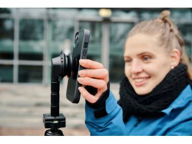 The VACUUM screw base for tripods is the simple extension of the universal smartphone mount VACUUM. The base is multicompatible and can be mounted on all standard tripods with a ¼ inch screw thread – whether screw cap or via cold shoe. Thus, the smartphone can be attached to ring lights or as an additional display on the camera. If the big camera should stay home, VACUUM can also be used flexibly for the favorite tripod. The screw base is composed of three individual spacer that can be screwed together depending on the desired height. Cold shoe and VACUUM head are included in the delivery.