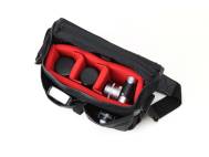 The bag can hold a mirrorless camera and up to three lenses. It features three compartments separated by Velcro partition and two handy front compartments. When you flip the protective flap open, the entire contents of the bag are apparent which makes this a great solution for the photographer on the run.