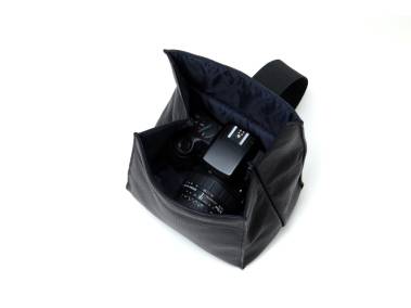 Thanks to firm elastic band, the size of the pouch can be adjusted, allowing different kinds of cameras to be carried.
