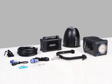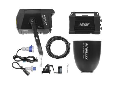 Scope of delivery: spot light with protective cap, mounting bracket, RF-NL-L-45 reflector (45°), power supply unit, mains cable (2.50 m + 0.50 m), connecting cable (7.50 m), quick release clamp for power supply unit, radio remote control and USB flash drive. In carton packaging.