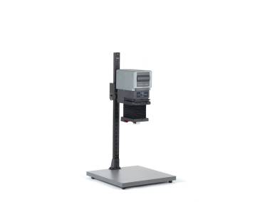 Umrüstbar zum Reprostativ mit nur wenigen Handgriffen. Dazu wird der Gerätekopf gegen den Reproadapter RA 2 XA (5421) ausgetauscht. Bei Bedarf kann noch eine Beleuchtungseinrichtung aus dem Repro-System R2 am Grundbrett befestigt werden.