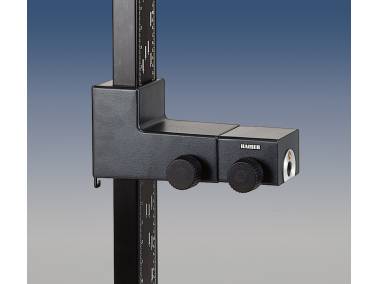 Zur Verlängerung des Haltearms der Führungssäule. Erforderlich bei der Erfassung großer Vorlagen. Der Abstand zwischen der optischen Achse des Kameraobjektivs und dem Sockel der Führungssäule wird um 80 mm vergrößert, wenn der Verlängerungsarm zwischen Haltearm und Kameraarm montiert wird.![]()