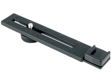 Leichtmetallschiene mit elastischer Auflagefläche. Befestigungsschraube mit Gewindezapfen B 1/4 und Stativgewinde A 1/4.