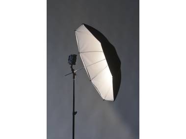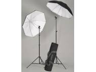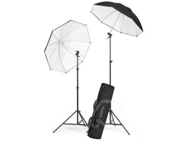 2 Reflex-/Durchlichtschirmen, ø 90 cm, innen mit weißem Stoffbezug, außen mit abnehmbarer Reflexbespannung und