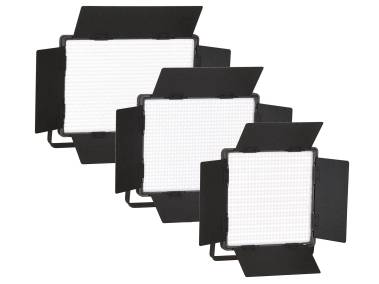 Lieferumfang: LED-Flächenleuchte, Netzteil mit Kabel, Netzteilhalterung, Diffusorscheibe, Softscheibe, Blaufilter, Etui für 2 Vorsatzscheiben, Tragekoffer.
