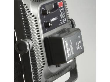 Für den mobilen Einsatz lässt sich die Leuchte auch mit einem V-Mount-Akku (nicht im Lieferumfang) betreiben.