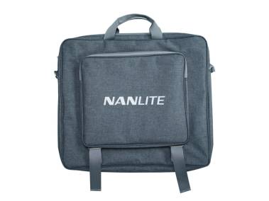 Transporttasche mit Vortasche für Netzteil und Zubehör, Innenfach für Spiegelaufsatz, Halteschlaufen für ein Leuchtenstativ, Tragegriff und Umhängegurt. Außenmaße (BxHxT): ca. 49 x 43 x 9,5 cm.