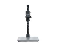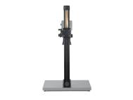 Breite, vibrationsarme Führungssäule aus Aluminium-Profilrohr, mattschwarz eloxiert, mit cm- und inch-Skalen sowie Markierungen für Vergrößerungsmaßstäbe.