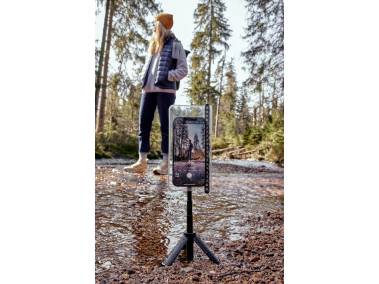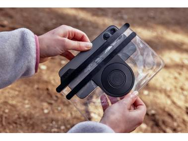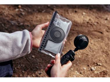 Die universelle Hülle mit VACUUM-Geometrie und HERMETIC-Verschluss schützt das Smartphone sicher vor Wasser, Matsch und Staub an und abseits der Halterung.