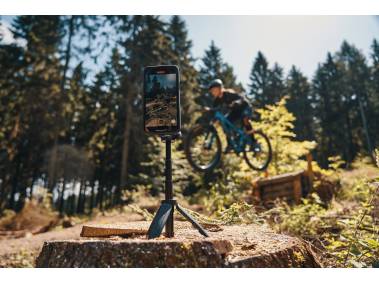 Auf dem Rad unterwegs im Wald, zu Hause bei Arbeiten am Tisch, oder im Urlaub: Das Smartphone ist immer dabei, die besten Momente wollen immer eingefangen und für die Ewigkeit festgehalten werden. Die VACUUM mini tripod base mit dem kleinen, mobilen Stativ, ist die perfekte Erweiterung der universellen VACUUM-Familie. Das portable Stativ inklusive Selfie-Stick lässt sich klein zusammenfalten und kann einfach unterwegs im Rucksack verstaut werden. Zu Hause ist die Halterung die perfekte Ergänzung bei Arbeiten am Tisch oder beim Kochen.