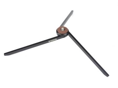 Elegantes, „dreiflügeliges“ Tischstativ aus hochwertiger, besonders leichter Aluminiumlegierung, schwarz eloxiert.