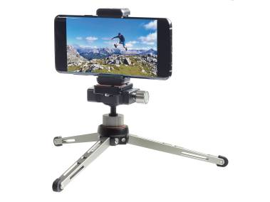 Mini-Stativ „solid 3+“ (7223) mit Kugelneiger „2fix“ (7201).