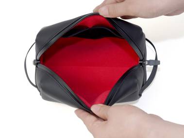 Hochwertige Kamera/Zubehör-Tasche mit Platz für ein Kameragehäuse (spiegellose Systemkamera oder Leica M) und ein angesetztes Objektiv. Außenmaterial, Reißverschluss und Schiebergriffe in elegantem Mattschwarz. Außenmaterial aus kratzfestem, wasserdichtem Polyurethan (DULON®). Wasser- und feuchtigkeitsbeständiger Reißverschluss mit fixierbaren Schiebergriffen. Mit zwei seitlichen Tragegriffen, aber auch ideal zur Unterbringung in größeren Foto- und Freizeittaschen oder im Reisegepäck. Samtartiges Innenfutter.