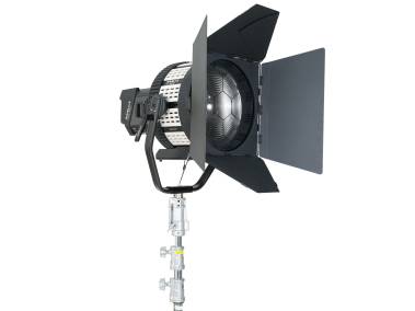 Dreh- und abnehmbarer Vorsatz mit vier Lichtklappen für gezielte Lichtführung. Zwei Lichtklappen mit ausschwenkbaren Zusatzflächen. Bei Veränderung des Lichtaustrittwinkels dreht sich der Lichtklappenvorsatz nicht mit und die Stellung der Lichtklappen bleibt erhalten.