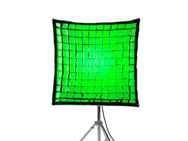 Für die Erzielung von gerichtetem Licht und zur Verminderung von Streulicht kann eine im Lieferumfang enthaltene Stoffwabe befestigt werden.