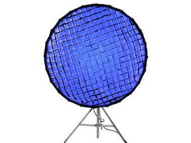 Für die Erzielung von gerichtetem Licht und zur Verminderung von Streulicht kann eine im Lieferumfang enthaltene Stoffwabe befestigt werden.