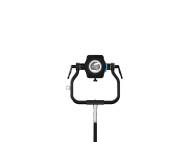Speziell geformter Montagebügel, zur Verlagerung des Schwerpunktes bei montiertem Scheinwerfer und für einen größeren Schwenkbereich nach unten bei Montage auf einem Stativ. Verriegelung beidseitig mit Klemmhebeln. Aluminium. Befestigung auf geeigneten Stativen und an Halterungen mit 16 mm (5/8“)-Normzapfen (Baby Pin) oder 28 mm-Normhülse (Junior Pin).