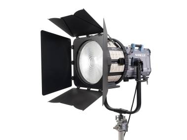 Für Studio-Scheinwerfer mit NLM-Bajonettanschluss mit elektronischen Kontakten, z. B. für Evoke 5000B und 2400B. Mit Fresnel-Linse zur Bündelung des Lichts und zur Erzielung einer höheren Beleuchtungsstärke (z. B. an Evoke 5000B: 79500 Lux in 5 m Entfernung bei 5600 Kelvin / 16°). Lichtaustrittswinkel stufenlos von 16° bis 50° verstellbar. Mit Tragegriff und Standfüßen.