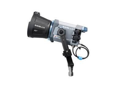 Mit zwei 5-poligen XLR-Anschlüssen (DMX IN und DMX OUT), die dem Scheinwerfer eine kabelgebundene DMX/RDM-Steuerung ermöglichen. Außerdem mit eigenem Erweiterungsanschluss, an dem weiteres, geeignetes Zubehör angeschlossen werden kann.