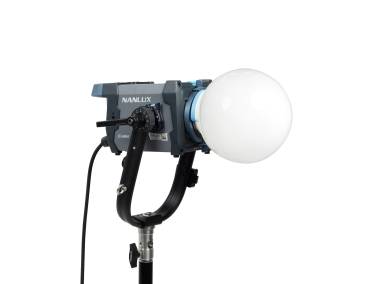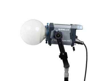 Kugelförmiger Leuchtenvorsatz mit FE-Bajonett (wie FMM-Bajonett, aber zusätzlich mit elektronischen Kontakten), für Scheinwerfer mit FE-Bajonettanschluss, wie z. B. NANLUX Evoke 150C sowie Scheinwerfer mit FMM-Bajonettanschluss, wie z. B. NANLITE Forza 60II, Forza 60 BII, Forza 60C, Forza 60CR, Forza 150, Forza 150B, FS-60B, FC-60B, FC-120B und FC-120C.