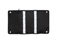 Befestigt wird der Organizer an der Innenseite des Kofferdeckels mit zwei Klettverschlüssen und Schrauben an den vier Ecken (Befestigungsmaterial im Lieferumfang enthalten).