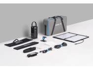 Lieferumfang: Flächenleuchte, separate Steuereinheit, Verbindungskabel (5 m), Netzkabel (4,50 m), Softbox, inkl. Standard- und Lite-Diffusor sowie Stoffwabe, Leuchtenhalterung und Transportkoffer.