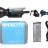 Robustes Kunststoffgehäuse, schwarz/silbern mit blauen Zierelementen und Schwenk-/Tragegriff.