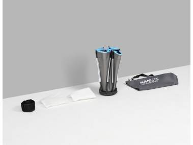 Zur Aufbewahrung (zusammengefaltet) können Diffusortuch und Stoffwabe an der Softbox bleiben.