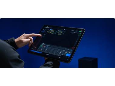 Separate Steuereinheit mit Bedienelementen und übersichtlichem 2,0“-Farb-Display sowie Anschlüssen für zwei V-Mount-Akkus, DMX/RDM-Adapterkabel, 48 V DC usw. USB-Buchse für Firmware-Update. Tragegriff. Befestigung der Steuereinheit am Leuchtenstativ mittels mitgelieferter Stativklammer mit Schnellkupplung. 4,50 m-Netzkabel.