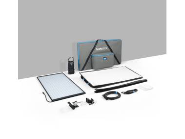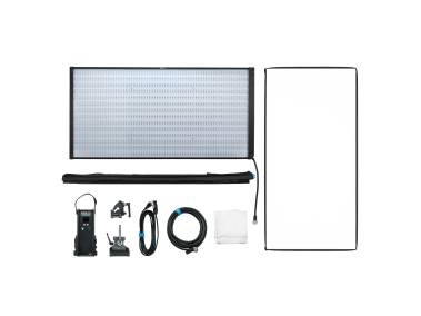 Lieferumfang: Flächenleuchte, separate Steuereinheit, Verbindungskabel (7,5 m), Netzkabel (4,50 m), Stativklammer, Softbox, inkl. Standard- und Lite-Diffusor sowie Stoffwabe, Leuchtenhalterung und Transporttasche.