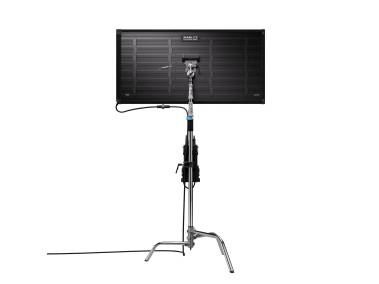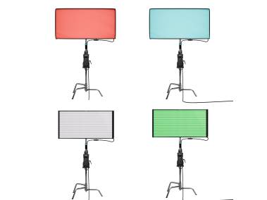 Professionelle, nur 1,96 cm flache Full-Color-Flächenleuchte mit weißem Licht (variable Farbtemperatur 2400 – 12000 Kelvin) und farbigem Licht sowie robustem, aber trotzdem leichtem Metallgehäuse 120 x 61 cm (4' x 2'). Selbst mit montierter Softbox flacher als Leuchtmatten mit Halterahmen. Deshalb auch besonders geeignet für Aufnahmesituationen mit wenig Platz (kleine Studios, unter der Decke) und bei mobilen Einsätzen wie Hochzeiten, Events und Meetings.