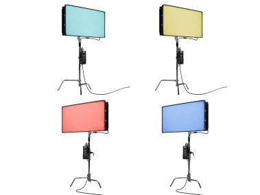 Farbiges Licht, beispielsweise zum Setzen von Farbakzenten bei Porträts, Produktfotos und Filmszenen oder zur Schaffung von Lichtstimmungen durch einen farbig angestrahlten Hintergrund. Kann auf drei verschiedene Arten eingestellt werden: