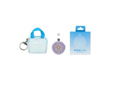 Lieferbar mit rundem Gehäuse als NANLITE cookie oder rechteckig als NANLITE cookie-s, jeweils in den Farben Cyan, Lavendel und Coral Pink. Inkl. kleiner Aufbewahrungstasche mit Karabinerring.