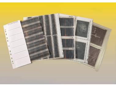 For the orderly and protected storage and archiving of negative strips and single negatives. Including cover sheet with index. Margin punched with Euro-holes.