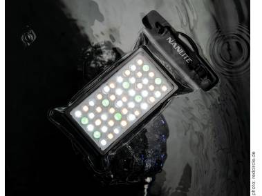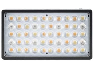 In the white light mode, the color temperature can be adjusted from 2700 to 7500 Kelvin. In addition green and magenta can each be adjusted in 100 increments. The light is flicker-free and without infrared and UV parts. High color rendering index of CRI: 95, TLCI: 97.