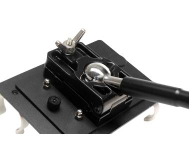 With curved support arm, sturdy ball joint and removable light support plate.