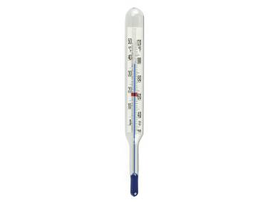 Alcohol-filled. With centigrade and Fahren- heit scales: 0 to 50° C/32 to 120° F. With marker at 18° C/64° F.