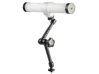To mount and individually align cameras, lights and accessories. With ball-and-socket joints at both ends. Both ball-and-socket joints and the middle joint are released and tightened by a central locking disk. Sturdy metal design. 1/4" camera connection thread. Mounting via slide-in foot, 1/4" male and female thread is possible with adapters included. Max. load 2 kg (4.4 lbs.), in horizontal position 1 kg (2.2 lbs.).