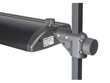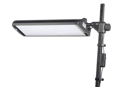 LED daylight lighting unit with two light banks for even and soft illumination. Emitted light has absolutely no IR and UV content. Constant current driver for flicker-free operation. Each light equipped with 192 selected white SMD LEDs 5600 Kelvin, CRI: 96. Elaborate passive cooling via LED board and light metal housing.