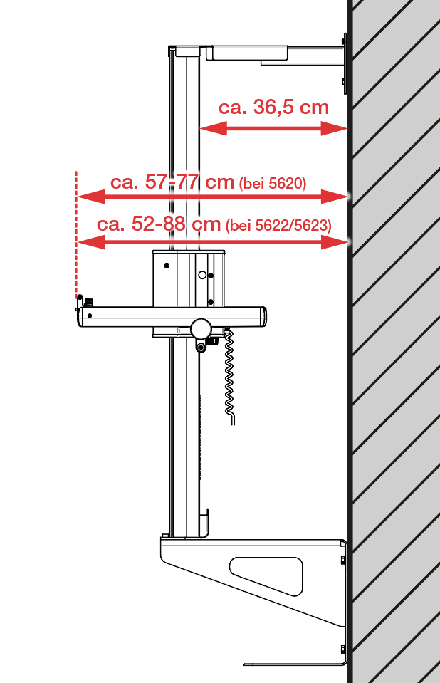 approx. 57 - 77 cm (20.5 - 30.3 in.) (for column 1.80 m)