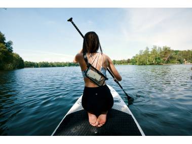 Casually across the chest or practically around the hips: the HERMETIC sling bag fits just as perfectly as it protects against moisture and dust. The patented, automatically sealing closure is 100% tight. Be it on a city trip, a jump into a wild adventure, or discovering the world on the water with your SUP: The sling bag offers space for the most relevant things that are dear to you. In addition to a smartphone, important cards, charging cables and car keys are always with you. And the magnetic belt buckle can be easily operated with one hand.