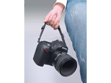 For cameras with two flat or round eyelets. Shoulder pad made from flexible high-grade Neoprene, edges covered with fabric. High carrying comfort. Ergonomically shaped, conforms to shoulder or neck. Durable and sturdy. Length adjustable. End sections can be detached from the Neoprene part and reconnected to serve as a wrist strap.