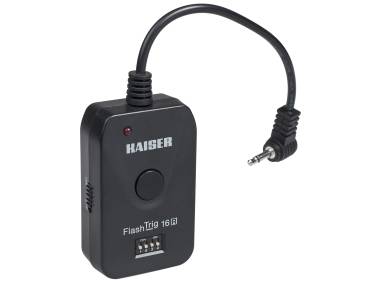 For triggering additional studio flashes in combination with "FlashTrig16" Radio Trigger Set. Test function. Battery operation. Receiver requires 2 AAA batteries (not included). Box contains: receiver with 3.5 mm jack plug, 3.5 mm to 6.35 mm plug adapter.