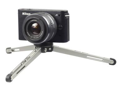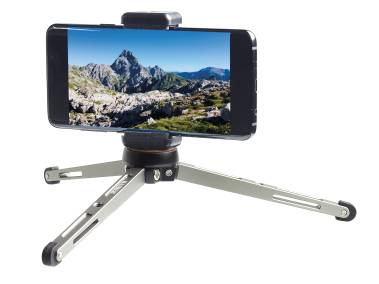 Solid mini tripod made of high-quality aluminum alloy with anodized surface. Carries up to 6 kg.