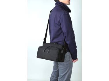 An adjustable shoulder strap keeps the bag comfortably in place. And the long, wide shoulder pad features a rough, no-slip side to grip the bag to your body. The strap is even long enough to wear this bag sling-style.