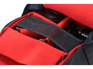 The top part of the backpack is assigned for personal items as well as zipped front pocket. The equipment inside is securely protected by cushioned and adjustable inner case.