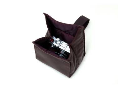 This new, compact, handmade soft leather camera pouch allows you to securely store and protect a small mirrorless camera, a lens or accessories inside of the bag.